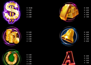 黄金闪电是一款6轴4行,24个格子的经典老虎机。游戏共有4096个中奖路